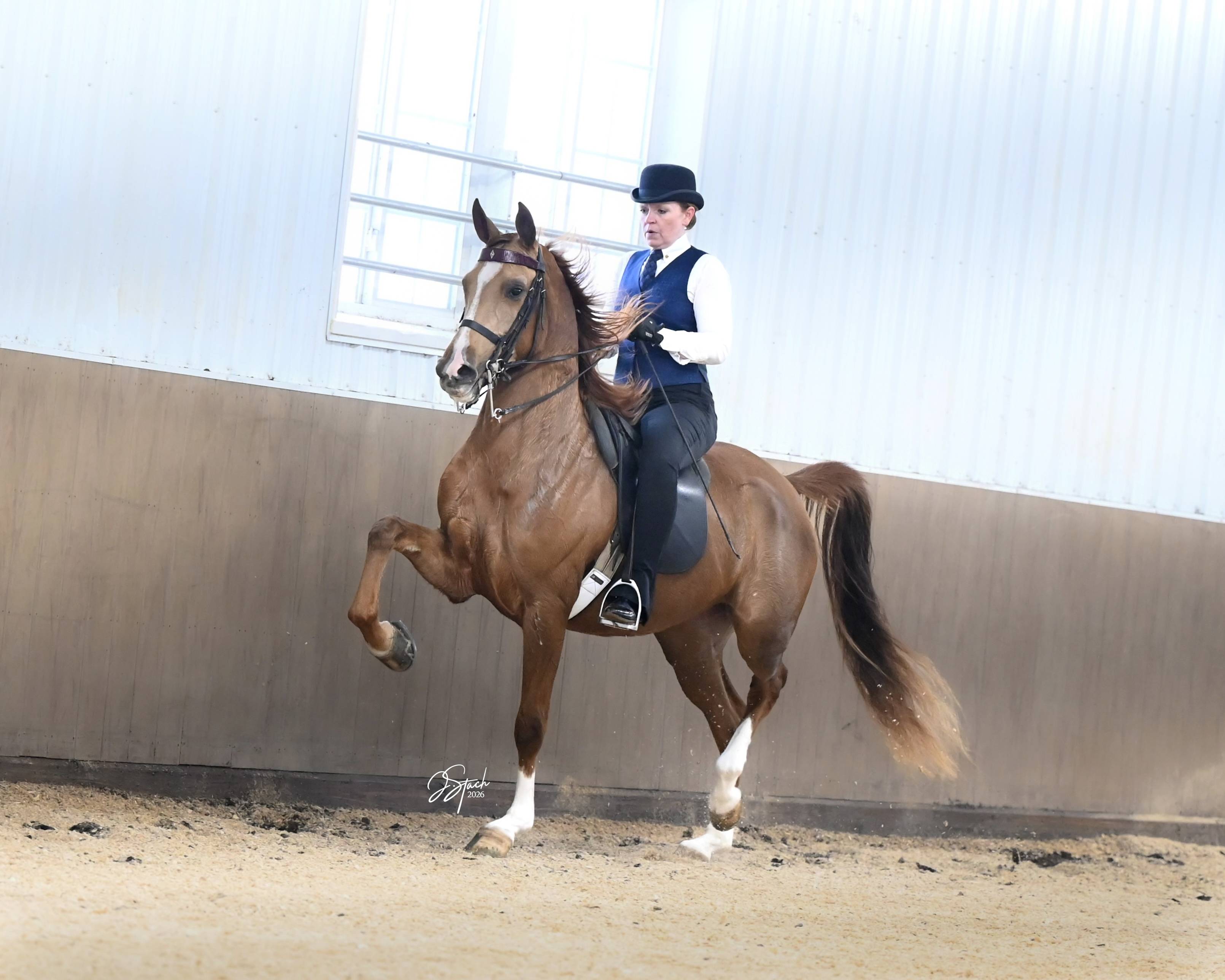 SHF Lovely Day is a Sweepstakes nominated 4 year old Purebred mare that is greatness bound. By SF Aftershoc and out of the exceptional mare, R Love Affheir, she is big, extraordinarily talented with a strong four cornered trot and will dominate in the English Pleasure division. If you have ever wanted to own an extraordinarily bred top English pleasure mare, this is now your chance to do so!